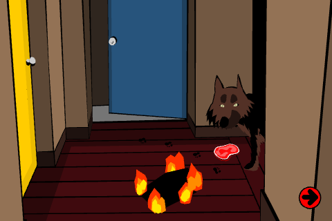 犬の前に移動。