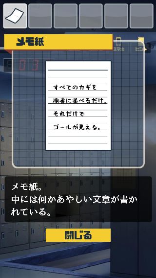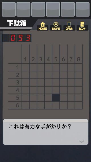 『左から5番目、上から5番目』の下駄箱を開けて、中を調べる。