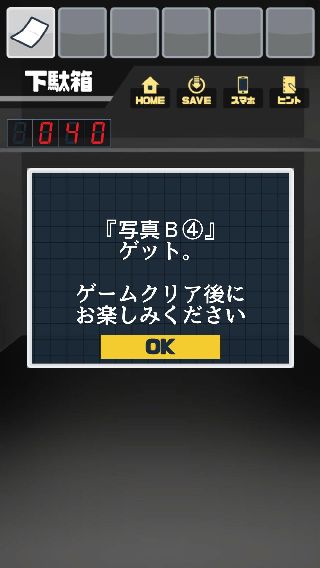覗いた下駄箱の下を調べて、隠しアイテム「写真B④」を入手。