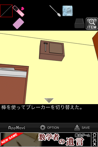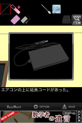 右上のエアコンに「鉄の棒」を使って「延長コード」を入手。