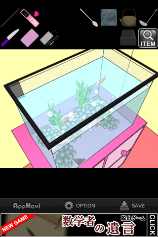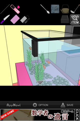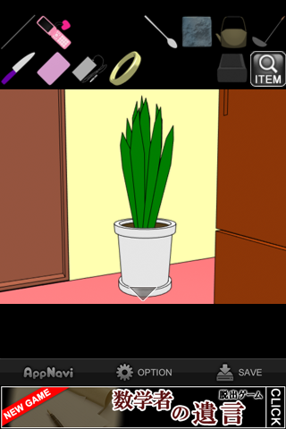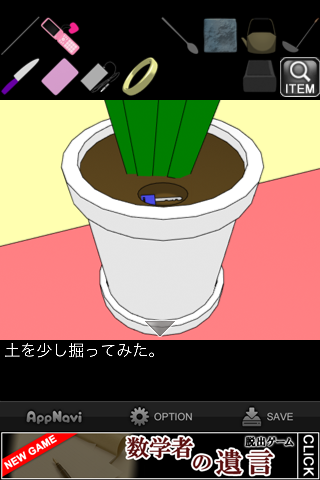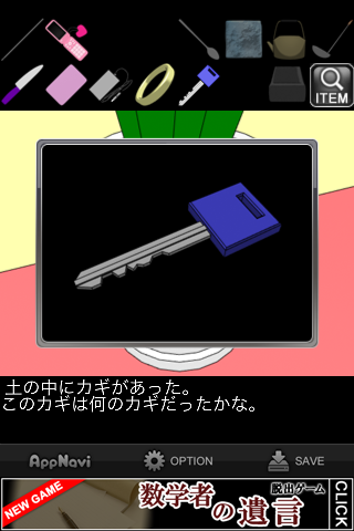 「スプーン」で土を掘って「カギ」を入手。