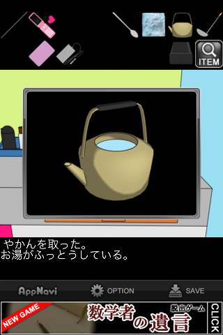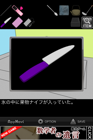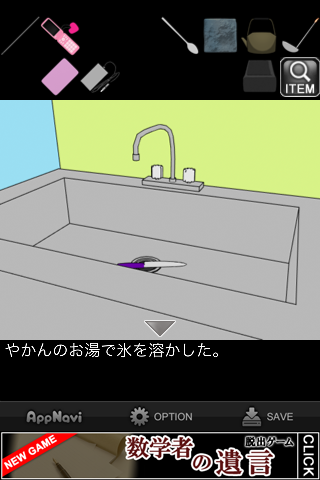 「やかん」のお湯で溶かして「果物ナイフ」を入手。