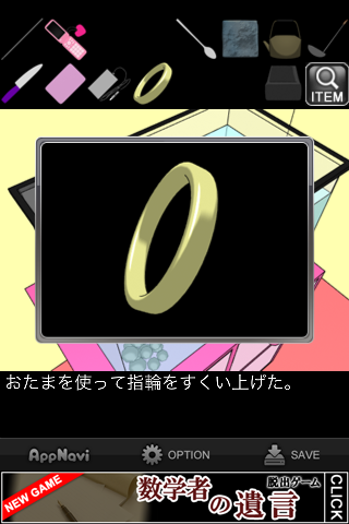 水槽を上から覗いて、「おたま」で「指輪」をすくい上げる。