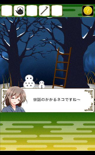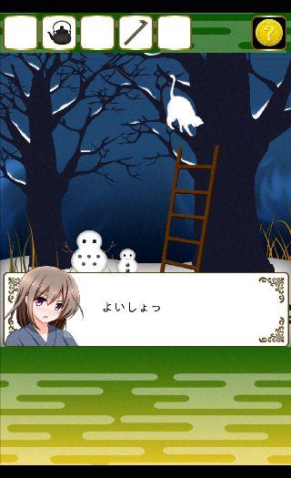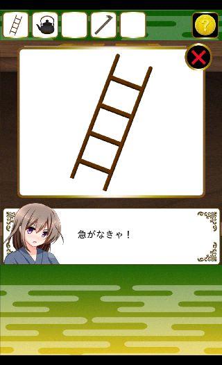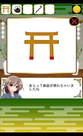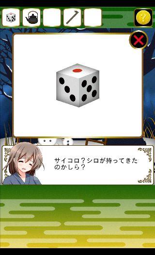 脱出ゲーム 絶対に開けてはいけない鶴の恩返し 無料 0 評価する 送信する 攻略その4 囲炉裏の前から再スタート。 右に移動。 左の神棚から「鳥居」を入手。 倉庫の前に移動して、倉庫と雪だるまの間を調べる。 「鳥居」を取り付ける。 「ハシゴ」を入手して、左に移動。 右の木に「ハシゴ」を掛けて、ネコをタップする。 左下の草から「サイコロ」を入手して、家の中へ。 「釘抜き」で床板を外す。 床下を拡大して、「サイコロ」をセットする。 ここのヒントは、3体の雪だるまの胴体にある。 攻略その1 攻略その2 攻略その3 攻略その4 攻略その5 攻略その6