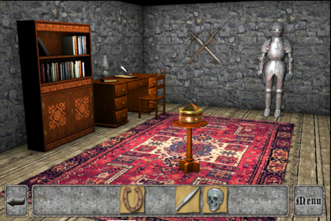 Cryptic Keep 有料 0 評価する 送信する 攻略その5 「家のカギ」で扉を開ける。 家の中に入る。 テーブルの上から「ランタンオイル」を入手。 紙に描かれた絵を確認。 中央の仕掛けを絵の通りに、上から『剣』『兜』『盾』の順に揃える。 中から「ルビー」を入手。 外に出て奥に進む。 ランタンに「ランタンオイル」を使うと、柱の記号が青く光る。 T字路まで戻り、中央の石段を調べる。 「金のカギ」を入手。 攻略その1 攻略その2 攻略その3 攻略その4 攻略その5 攻略その6