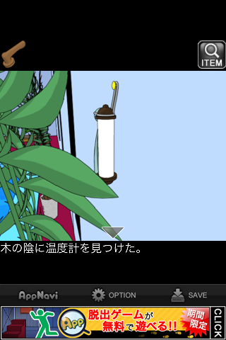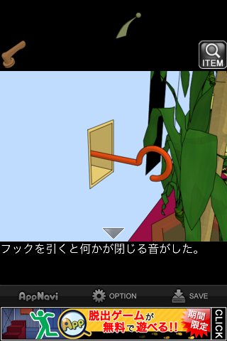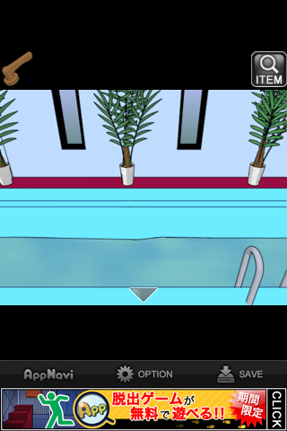 脱出ゲーム "水底の秘密" 無料 0 評価する 送信する 攻略その1 ピンクの扉の前からスタート。 扉に近づき、「ノブ」を入手。 180°反対側に移動。 中央の植木の奥を調べる。 温度計から「装飾品」を入手。 右に移動。 天井をタップして、窓が開いているのを確認。 180°反対側に移動。 左の植木の後ろにあるフックを引く。 180°反対側に移動。 攻略その1 攻略その2 攻略その3 攻略その4 攻略その5 攻略その6 攻略その7