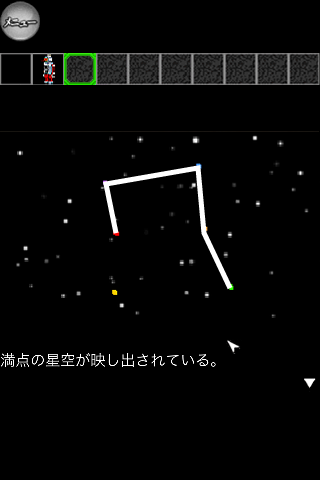 部屋の上部分をタップすると、星空の中に6色の点がある。