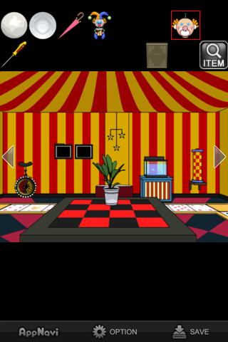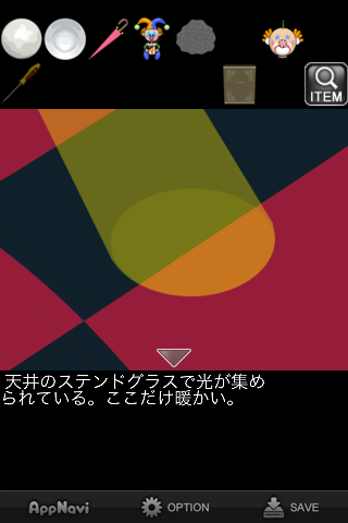 ピエロの服が掛かっている画面で天井を見上げると光が差し込んでいる。