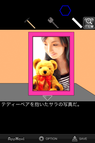 机の上の写真を調べて『テディーベア』のキーワードを確認。