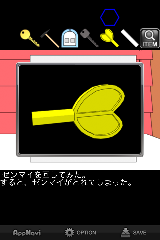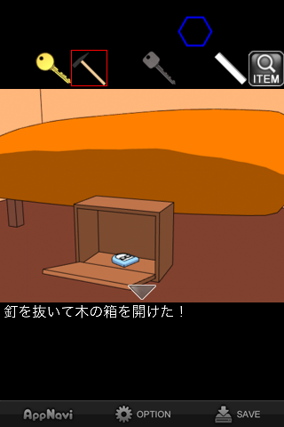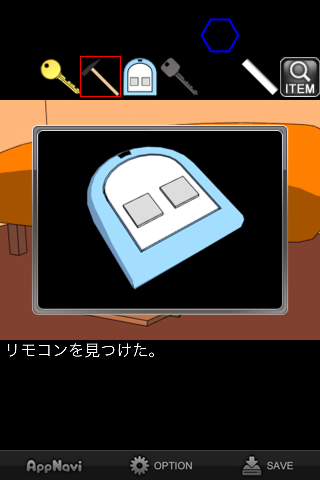 「トンカチ」で木の箱を開いて「リモコン」を入手。