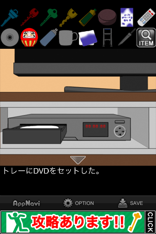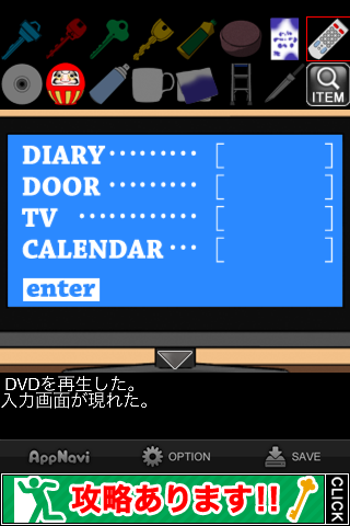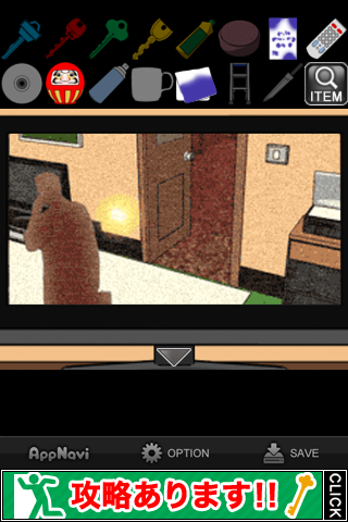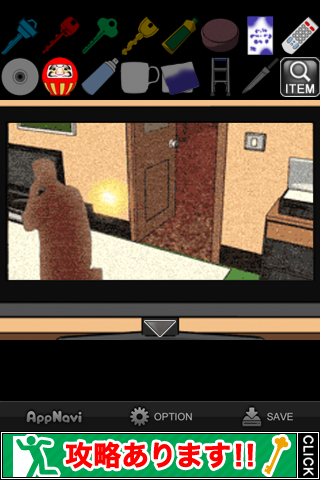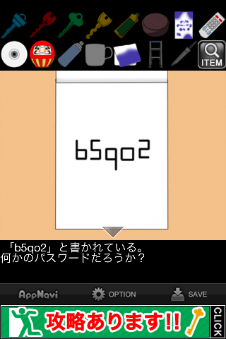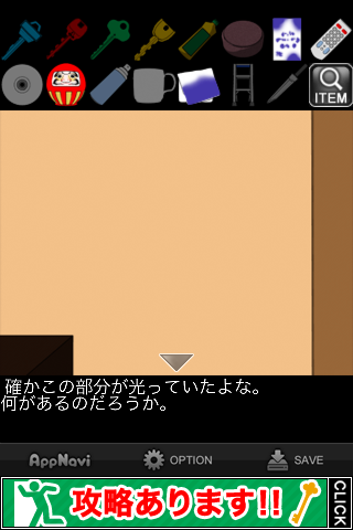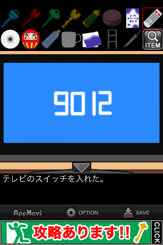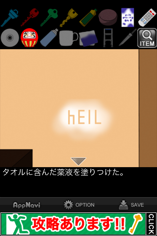 横の壁を拡大して「タオル」を使用。出てきた暗号は逆さにして『7134』にする。