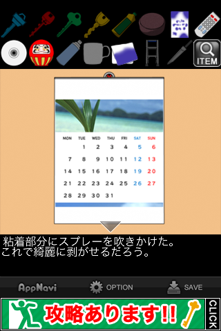カレンダーを調べて糊付けされているのを確認したら「スプレー」を吹きかける。