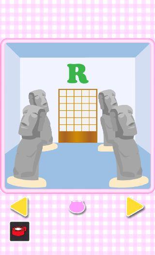 2つの蛇口は右の部屋のモアイの動きに対応していて、『青赤赤赤青』の順でタップする。(タップすると音がするのを確認。)