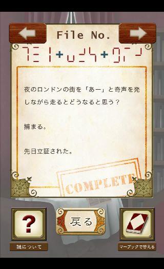 最初の問題は入力する場所が2ヶ所あり、上の項目は右にあった地図を見て『ロンドン』、下の項目はマードックの配置から矢印をヒントに『タオル』が導き出される。