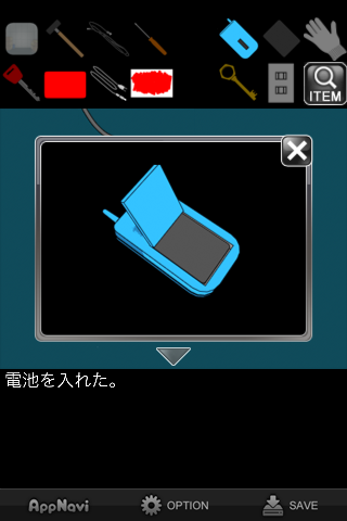「黒い部品」を調べて電池であることを確認してから、「携帯電話」に入れる。