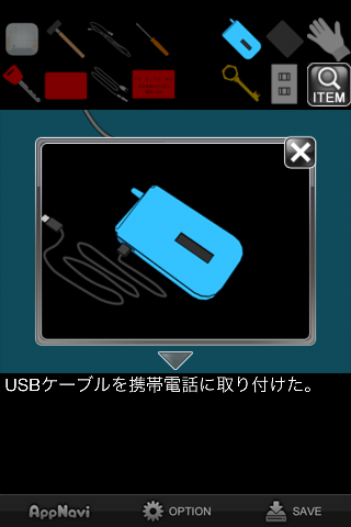 「携帯電話」を調べなおして「USBケーブル」を取り付ける。