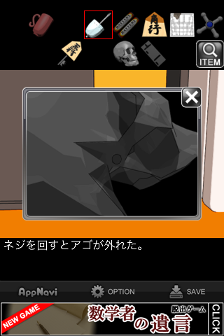 「透明なガイコツ」のアゴの部分を拡大して「ドライバー」で外しておく。