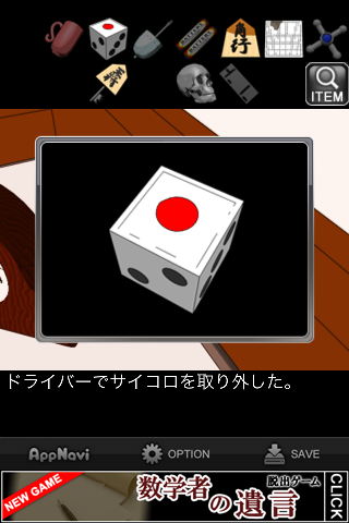 時計の右手に挟まっている「サイコロ」を「ドライバー」で取り出す。