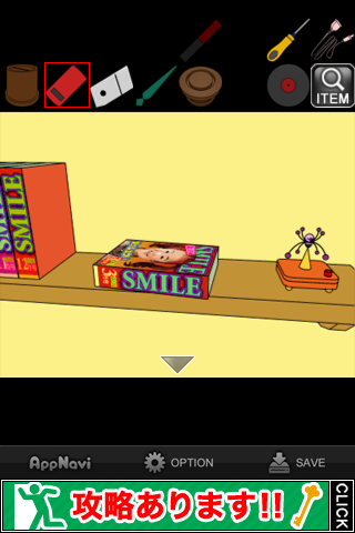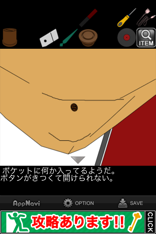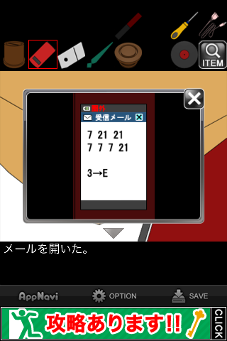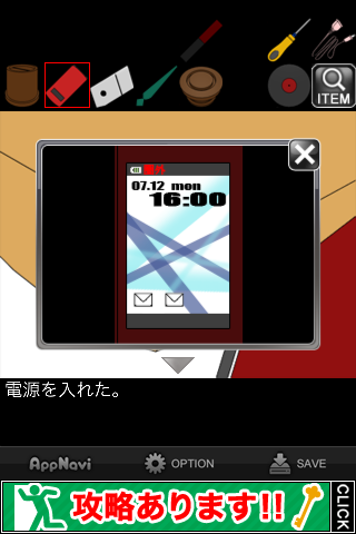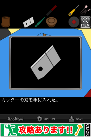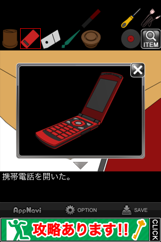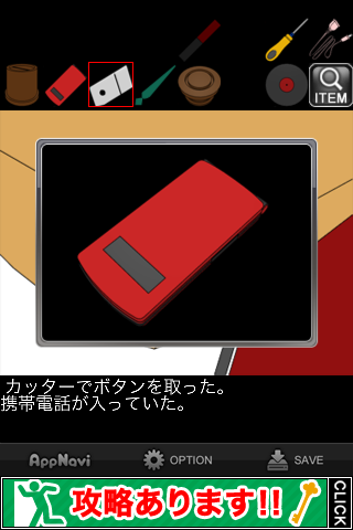 「カッターの刃」でボタンを取り、「携帯電話」を入手。