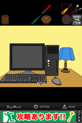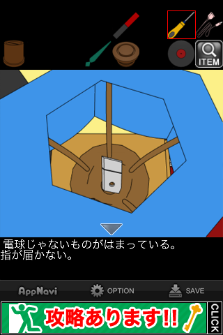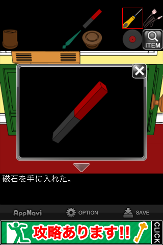 右のランプを調べて「磁石」を使って「カッターの刃」を入手。