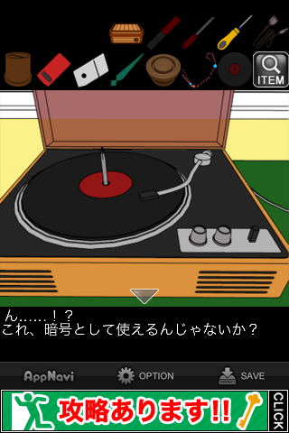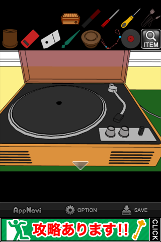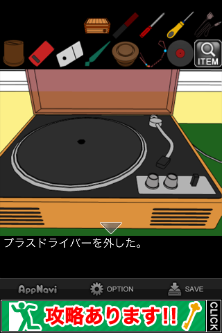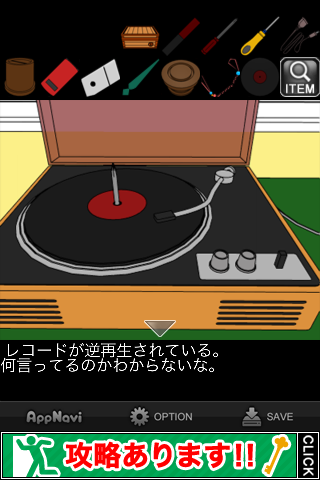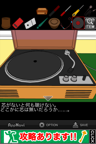 レコードプレーヤーを拡大して、『芯がないと…』のメッセージを出す。