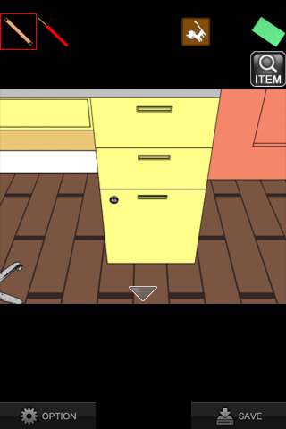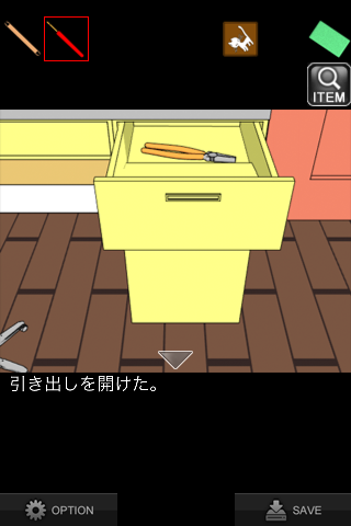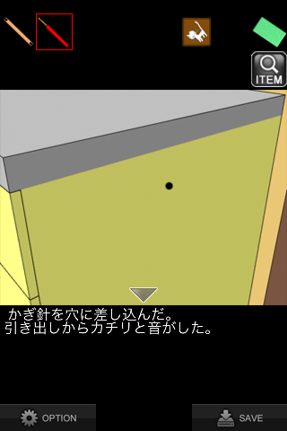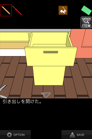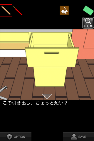 一番上を開けて、引き出しの奥を2回調べて『ちょっと短い?』のメッセージを出す。