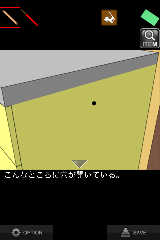 右側面を調べて、穴に「かぎ針」を差し込む。