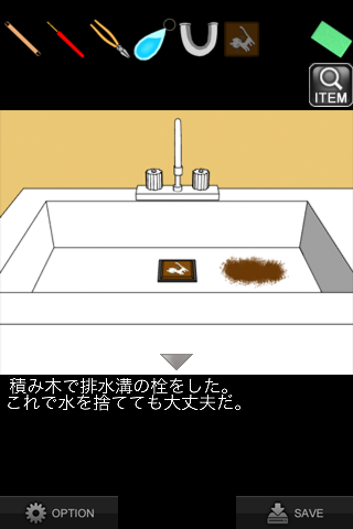 「猫の積み木」を取って水を抜き、「クリップ」を入手。