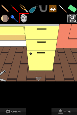 織り機のある画面に移動すると、右上から棒が降りてきている。