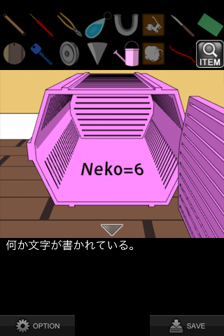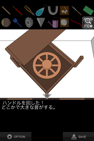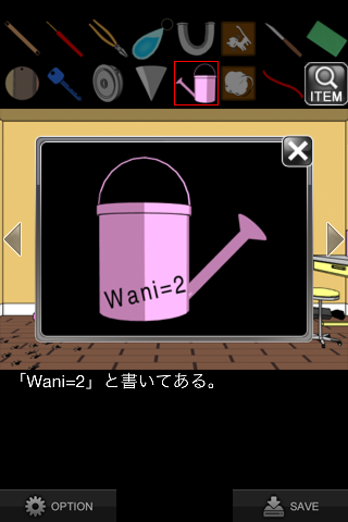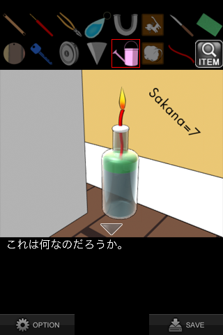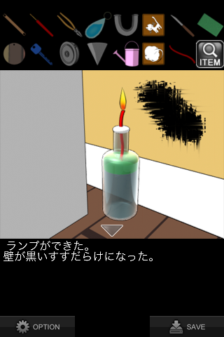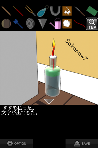 瓶に「毛糸」をセットして、壁のすすを払って文字を確認。