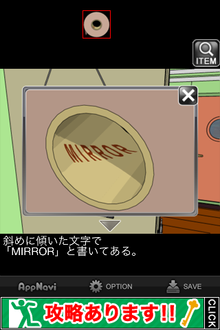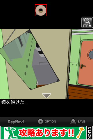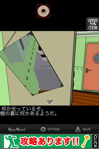 鏡を斜めにして、『棚の裏に何かあるようだ』のメッセージを出す。