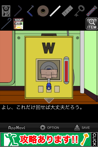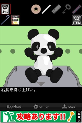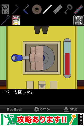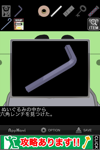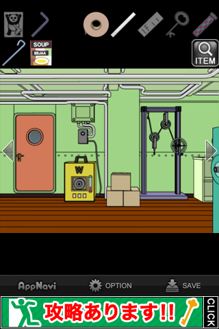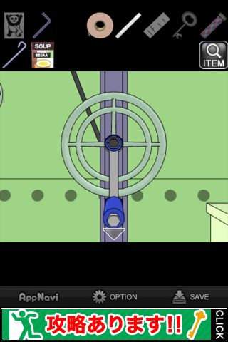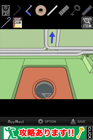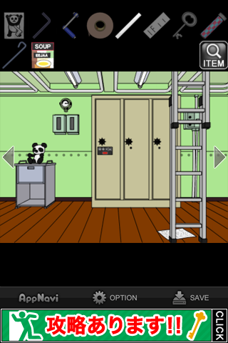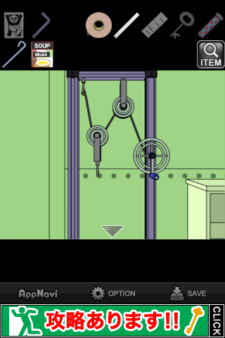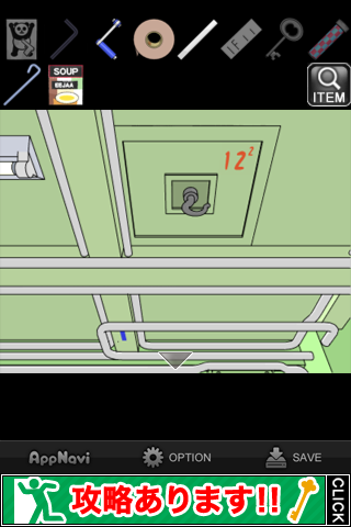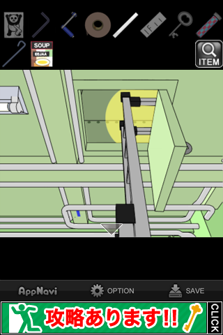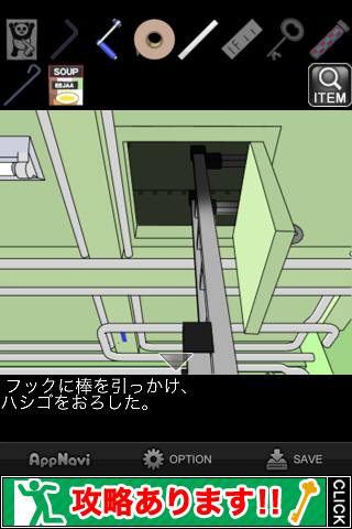 フックに「金属の棒」を引っ掛けてハシゴをおろす。奥が暗くてよく見えない事を確認。