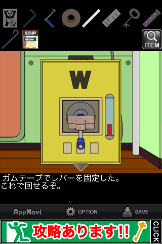 「レバー」を取り付けて「ガムテープ」で固定する。