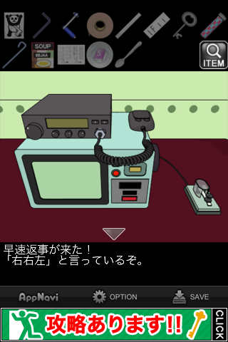 「書類」を選択して、無線機でSOSを送る。部屋をうろついて戻ると返事が来ている。