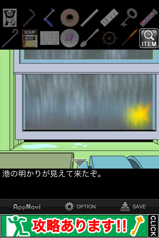 窓の光を確認して、画面を引くと港に着く。