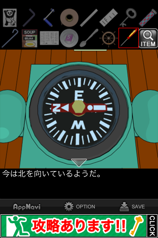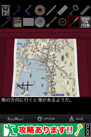 中の地図を確認して『南の方向に~』のメッセージを出す。