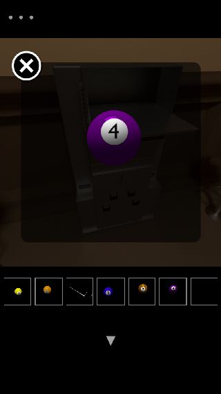 「7のボール」を入手して、一番左の椅子を拡大して下の形『三角形』を確認。