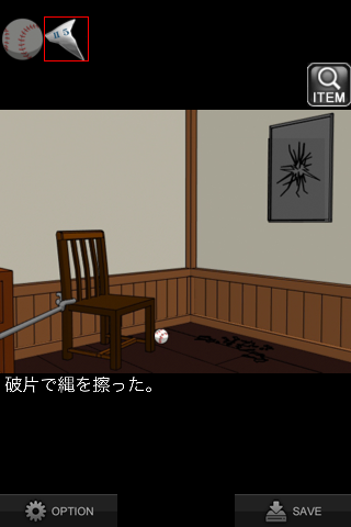 「破片」を紐に使用して切る。