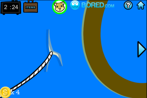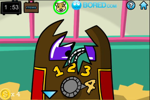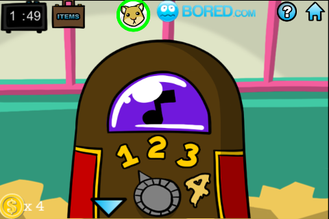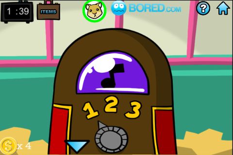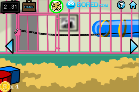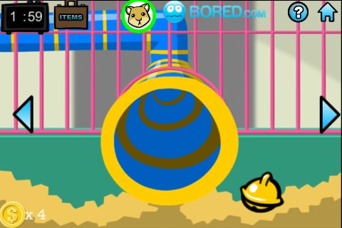 Hamster Cage Escape 無料 0 評価する 送信する 攻略その2 「エサ」と「水滴」を組み合わせて、さらに「人参」にくっつける。 左のジュークボックスへ。 「人参」をペン替わりに『4』の数字を書き足す。 ダイヤルを『4』に合わせると、ジュークボックスが壊れて「ロープ」を入手。 鈴の前に移動。 奥に移動。 左に進み、所持品を開く。 「ブロック」に「棒」を差して、壁の亀裂に使う。 大きくなった亀裂に「ロープ」を使う。 猫の前に戻り、猫をタップするとロープを扉に持ってくる。 攻略その1 攻略その2 攻略その3