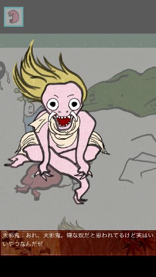 右にスクロールさせて、画面下から覗いている天邪鬼に話しかける。