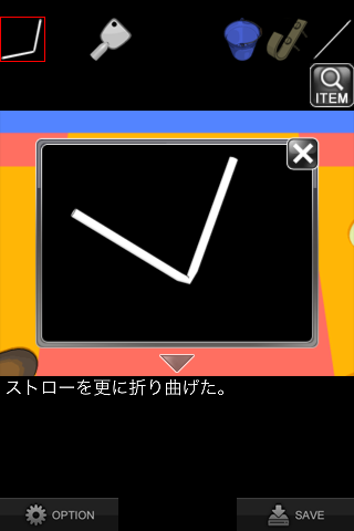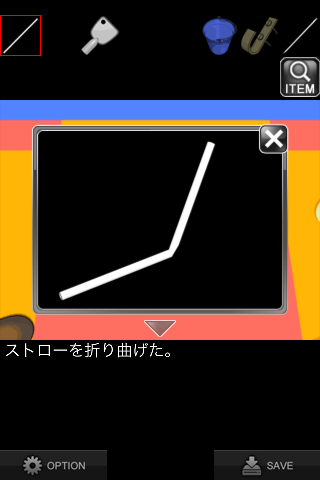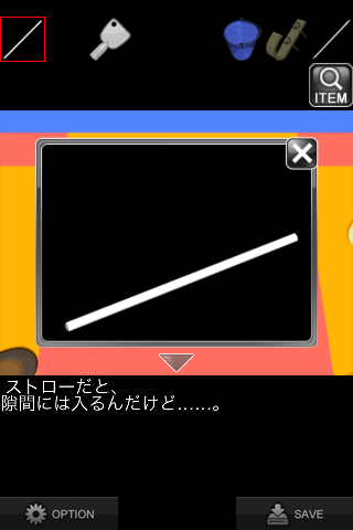 「ストロー」を使い『隙間には~』のメッセージを出して、「ストロー」を調べる。