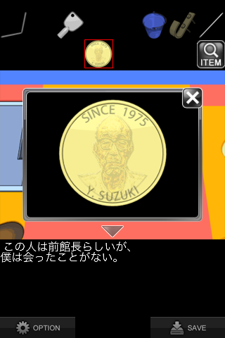 「金色のコイン」を入手して調べ、『この人は前館長~』のメッセージを出す。