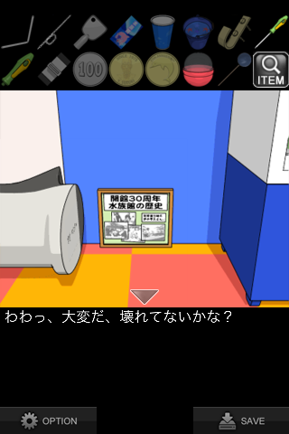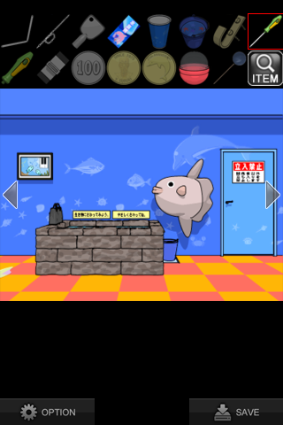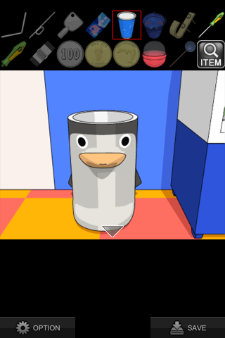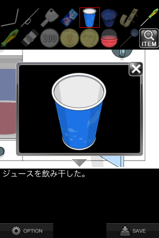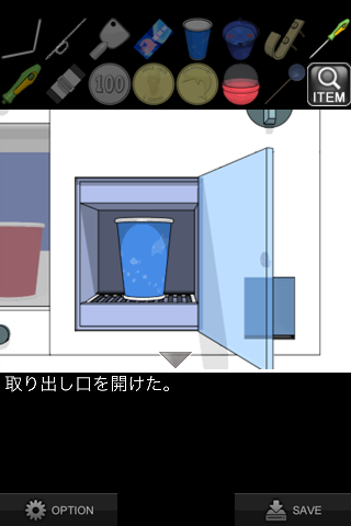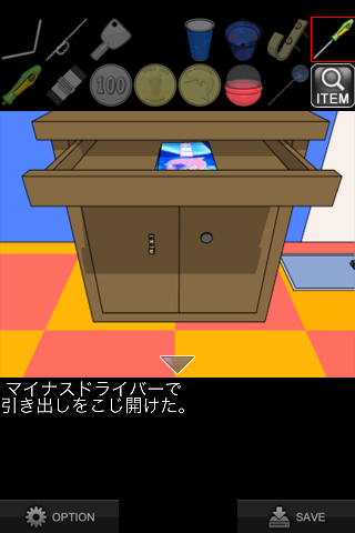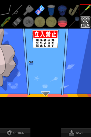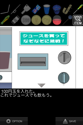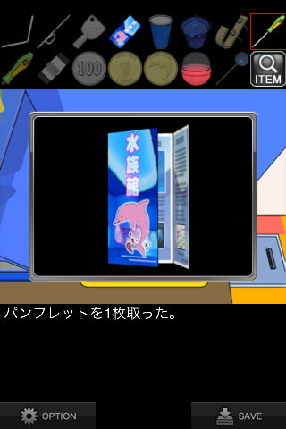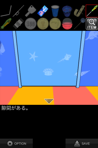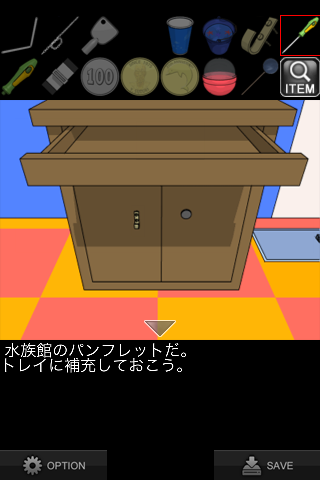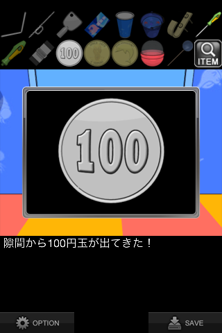 扉の下の隙間に「パンフレット」を使い、「100円玉」を入手。