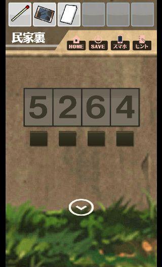 右下の装置を拡大して、カーブミラーで確認した暗号をカッコの数字の順番で『5264』に合わせる。