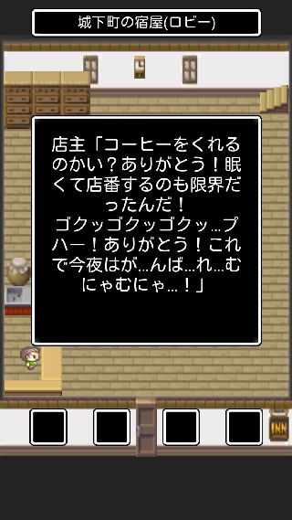 脱出ゲーム「勇者による魔王討伐を阻止せよ」 無料 0 評価する 送信する STAGE 2 城下町の宿屋(ロビー) テーブルの上から「コーヒー」を入手。 左下の右の壺から「ねむり草」、その下のキッチンから「乳鉢」を入手。 「ねむり草」をタップして、できた「薬品」をタップすると「ねむり薬入りコーヒー」を入手。 宿屋の店主をタップする。 一番左上の棚をタップして、「玄関のカギ」を入手。 画面下の扉をタップする。 STAGE 1 城下町の宿屋(勇者の寝室) STAGE 2 城下町の宿屋(ロビー) STAGE 3 城下町の宿屋前 STAGE 4 秘密の地下通路 STAGE 5 王国の地下通路 STAGE 6 王国の地下通路 STAGE 7 アーク城 地下へつづく隠し部屋 STAGE 8 アーク城 隠し部屋連絡通路 STAGE 9 アーク城 王室