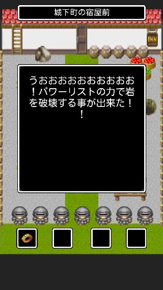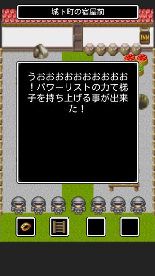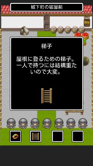 脱出ゲーム「勇者による魔王討伐を阻止せよ」 無料 0 評価する 送信する STAGE 3 城下町の宿屋前 右上にあるカゴの左上から「新鮮なリンゴ」を入手。 右から2番目の兵士に「新鮮なリンゴ」を渡して、その左隣の兵士に話しかける。 「パワーリスト」を入手して、右上の岩をタップする。 左上の「梯子」を入手。 穴に「梯子」を使う。 STAGE 1 城下町の宿屋(勇者の寝室) STAGE 2 城下町の宿屋(ロビー) STAGE 3 城下町の宿屋前 STAGE 4 秘密の地下通路 STAGE 5 王国の地下通路 STAGE 6 王国の地下通路 STAGE 7 アーク城 地下へつづく隠し部屋 STAGE 8 アーク城 隠し部屋連絡通路 STAGE 9 アーク城 王室
