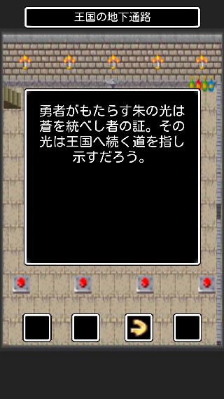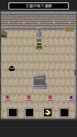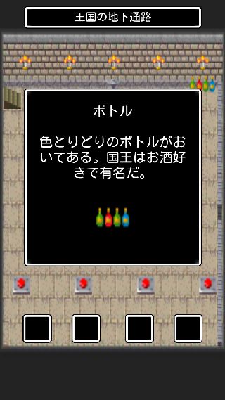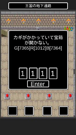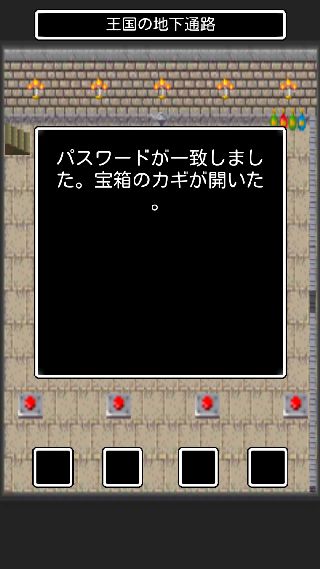 下の4つのボタンを左から『4番目、4番目、3番目、3番目、2番目、2番目、1番目』の順に押すと、壁の炎が全て青になる。