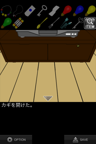 下の棚の右の引き出しに「小さなカギ」を使う。