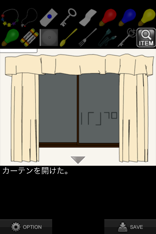 窓のカーテンを開けると別の暗号があるので、組み合わせると『86028』になる。