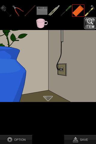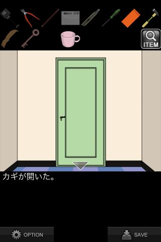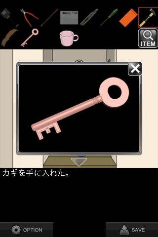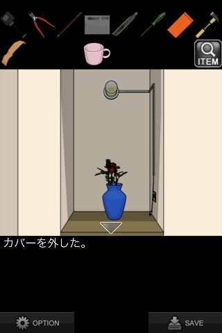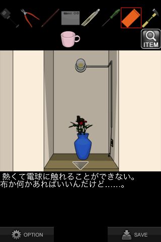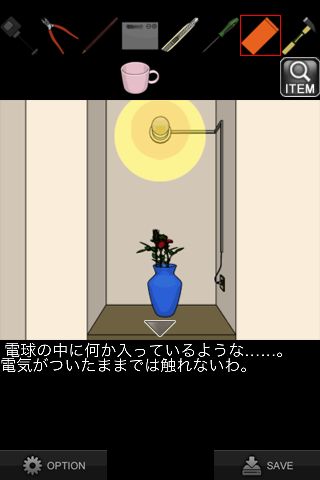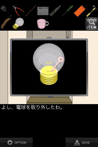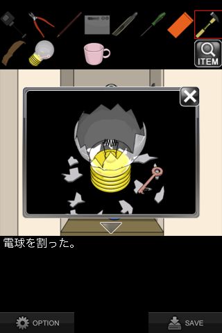 「ハンマー」で「電球」を割って「カギ」を入手。